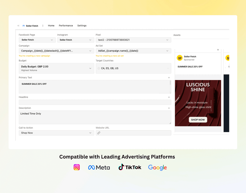 Ask questions like “Why did performance dip this week?” and get instant answers. SellerFetch monitors all your ad platforms in real time, dives deep into performance trends, and stays integrated with your workflow for clarity.